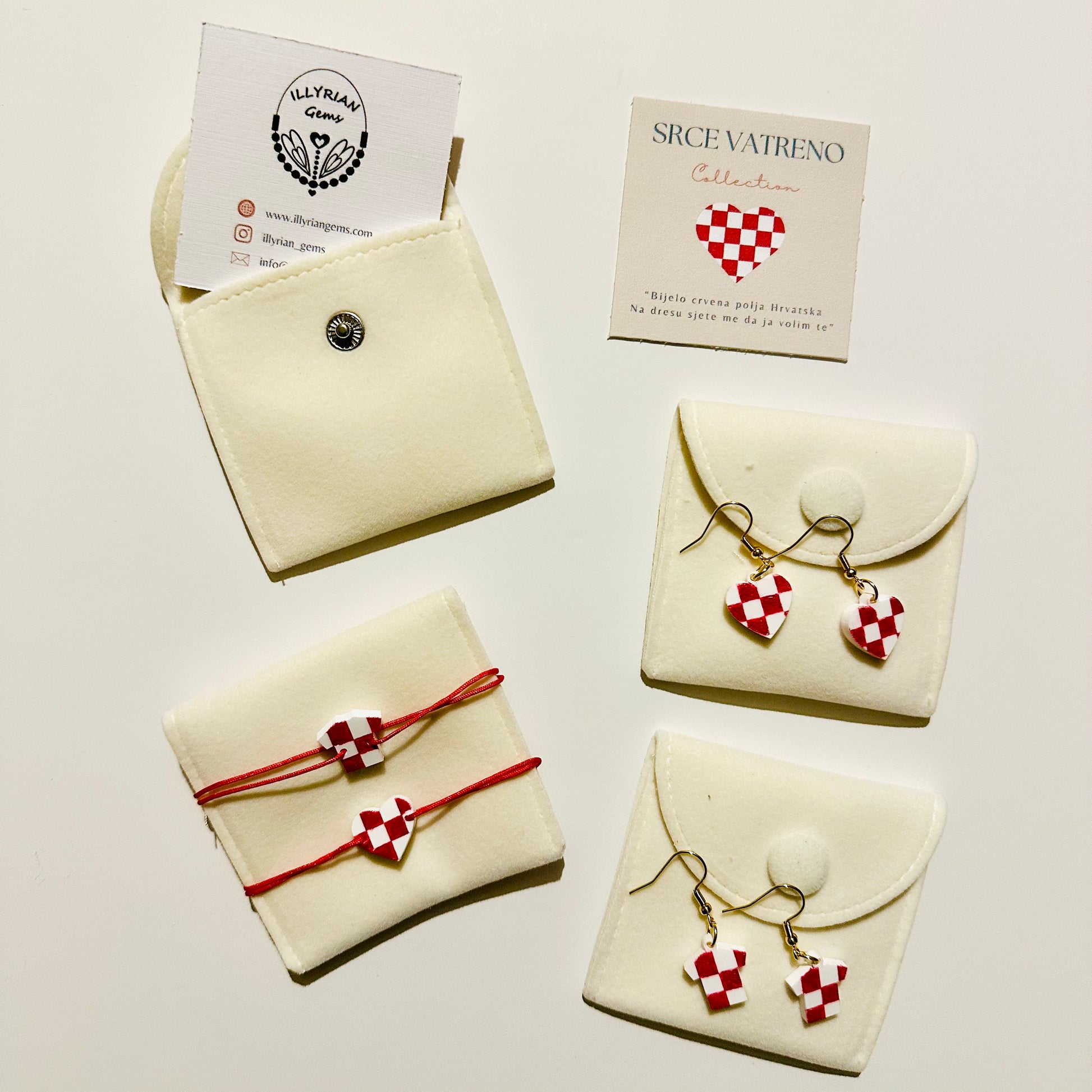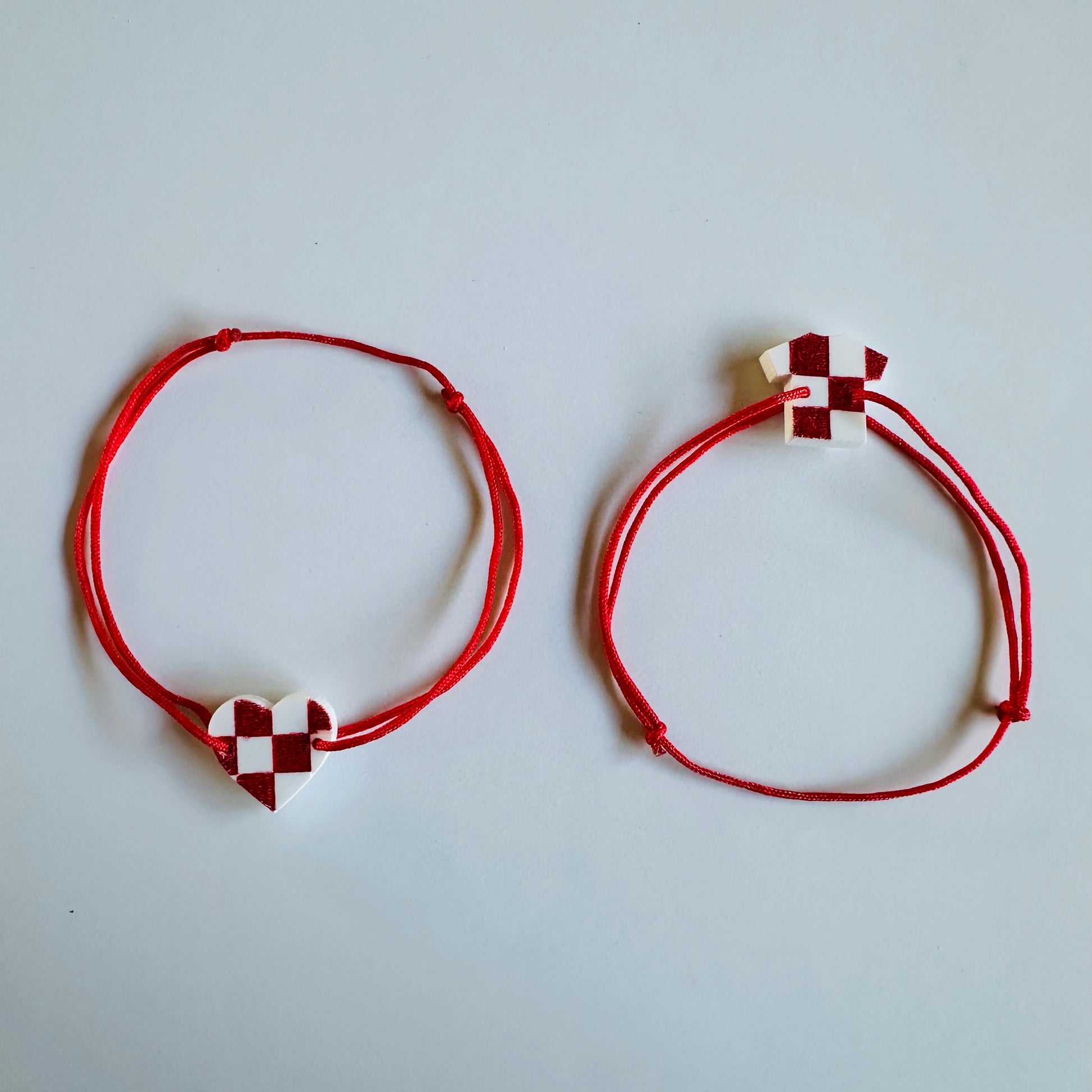 Srce Vatreno Bracelet - inspired by the iconic Croatian red and white checkers. The pendant has been custom engraved on acrylic and hand painted. The cord has 2 sliding knots making it adjustable for most wrist sizes.