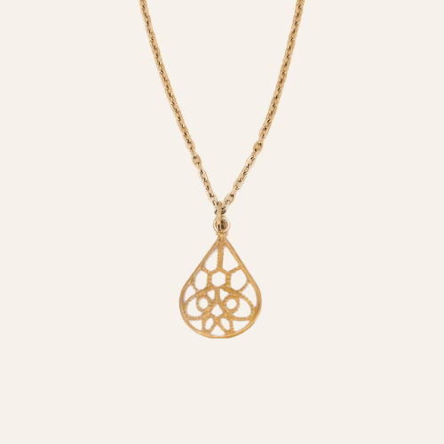 Add some elegance to your style with the Mikelle necklace and this delicate filigree stainless steel pendant.