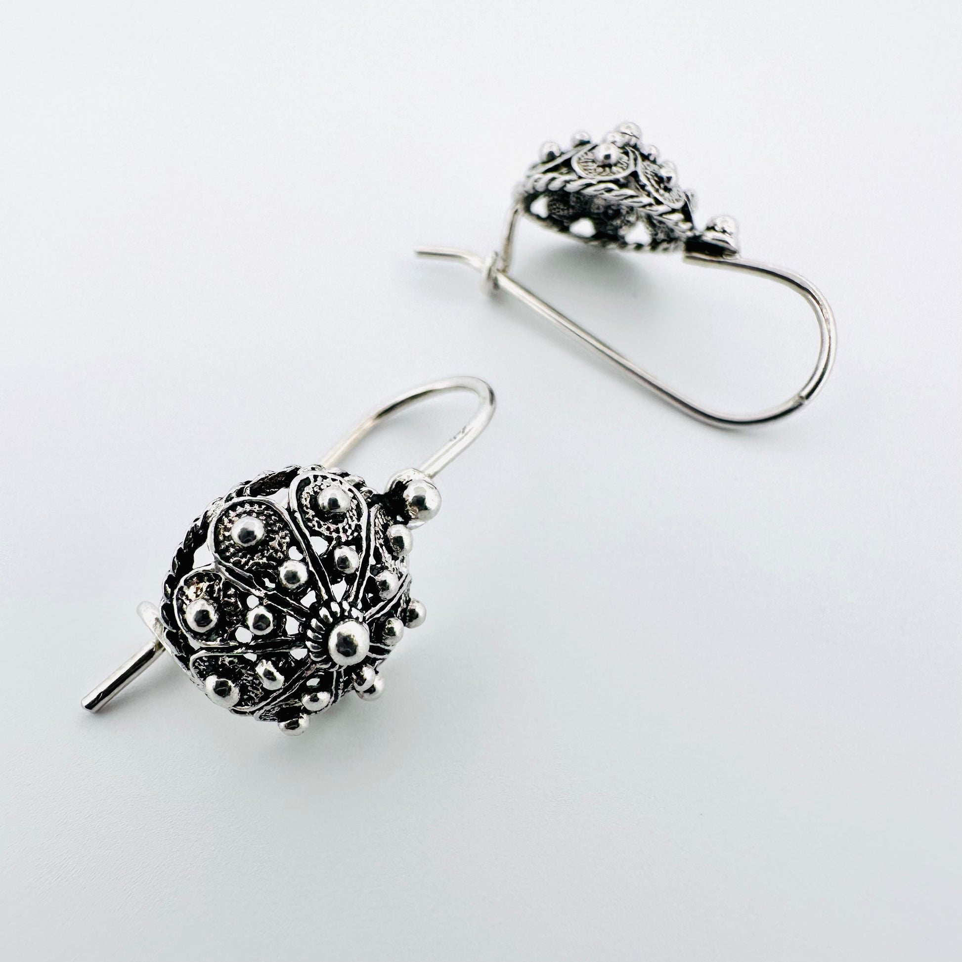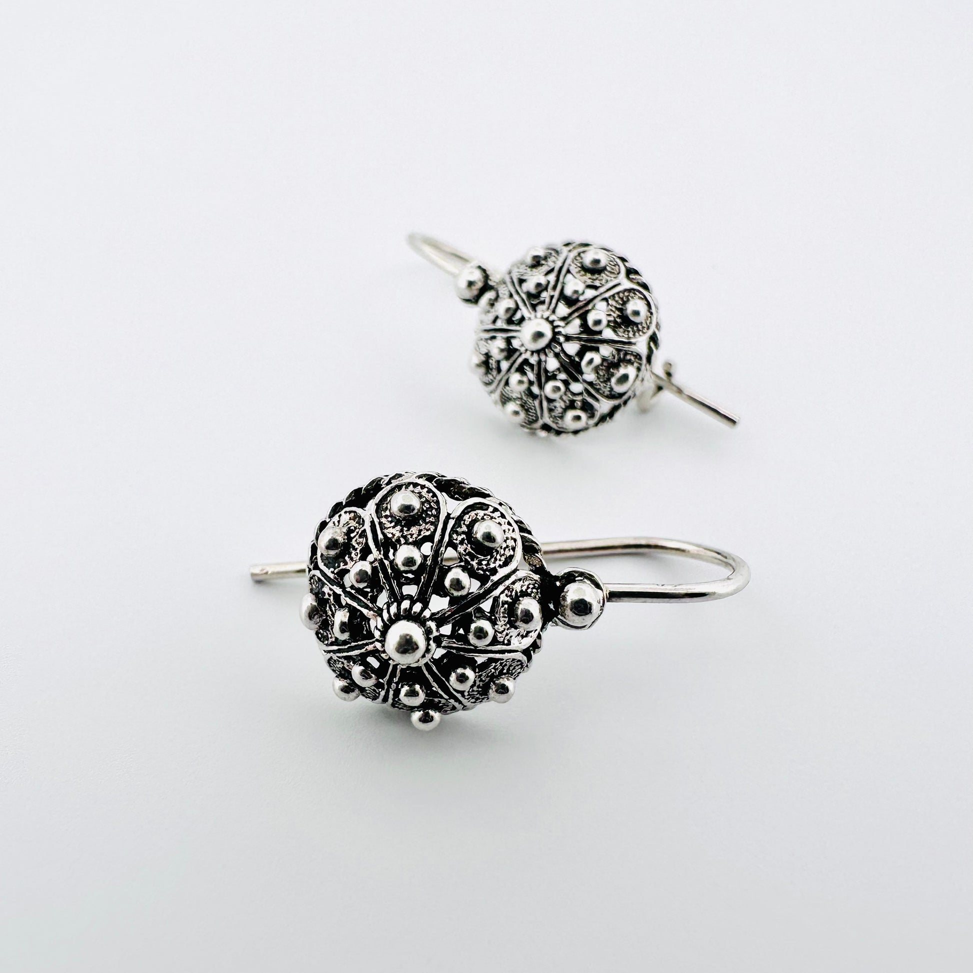 Contemporary version of the classic Botun model, these earrings are very elegant and stylish. Made from one half of the filigree ball, but equally intricate and stunning.