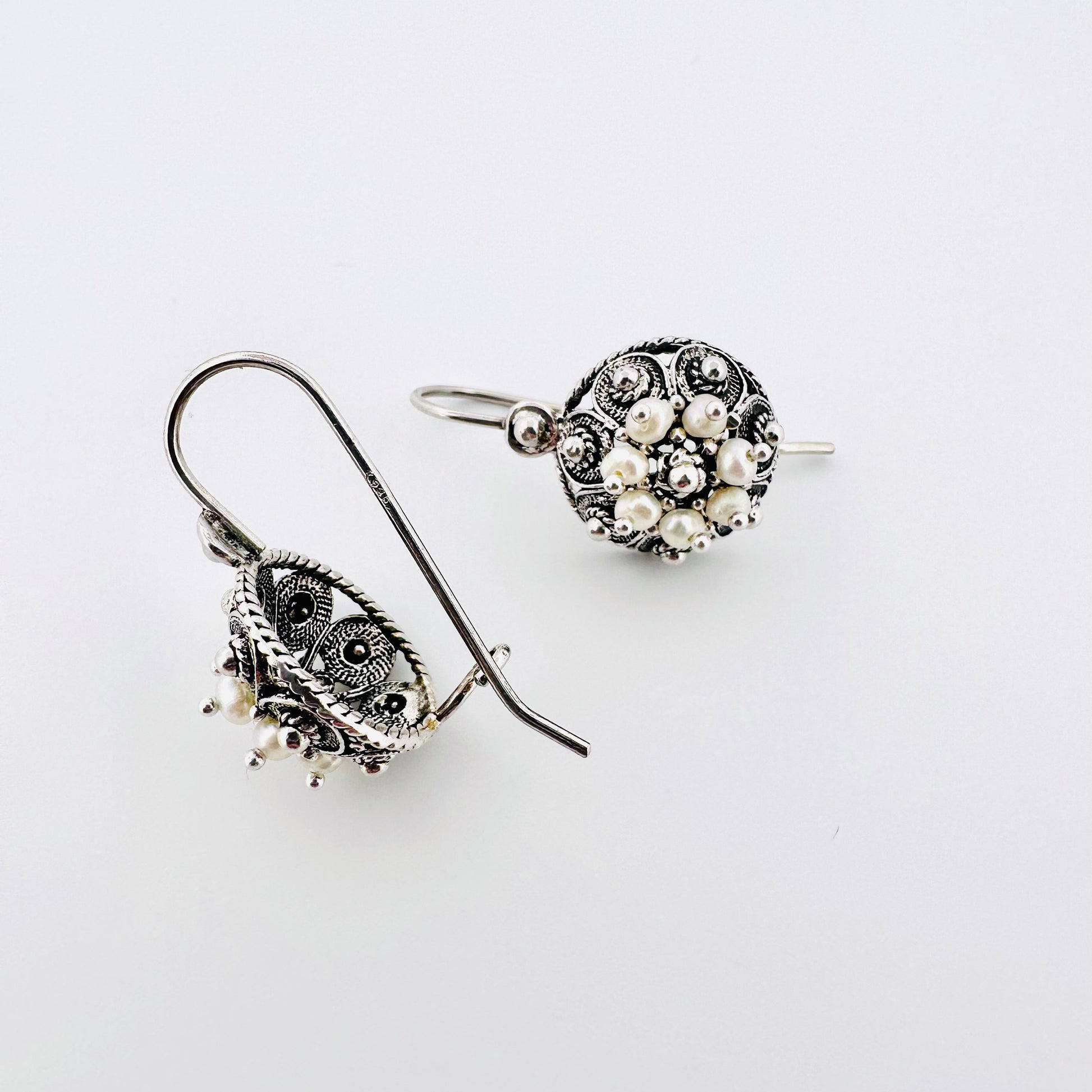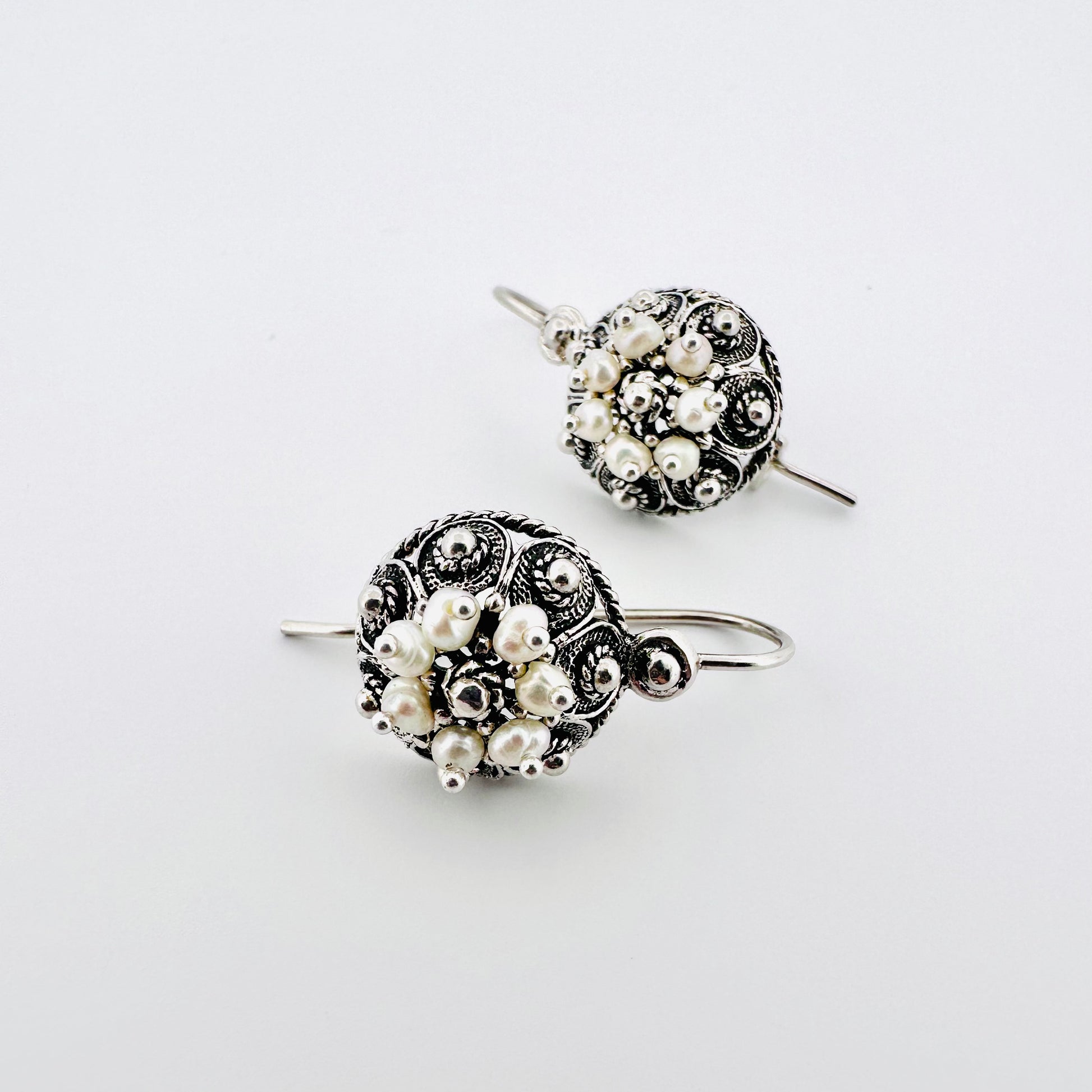 Contemporary version of the classic Botun model, these earrings are very elegant and stylish. Made from one half of the filigree ball with the addition of tiny pearls, these earrings are very luxurious and highlight the lady within you.