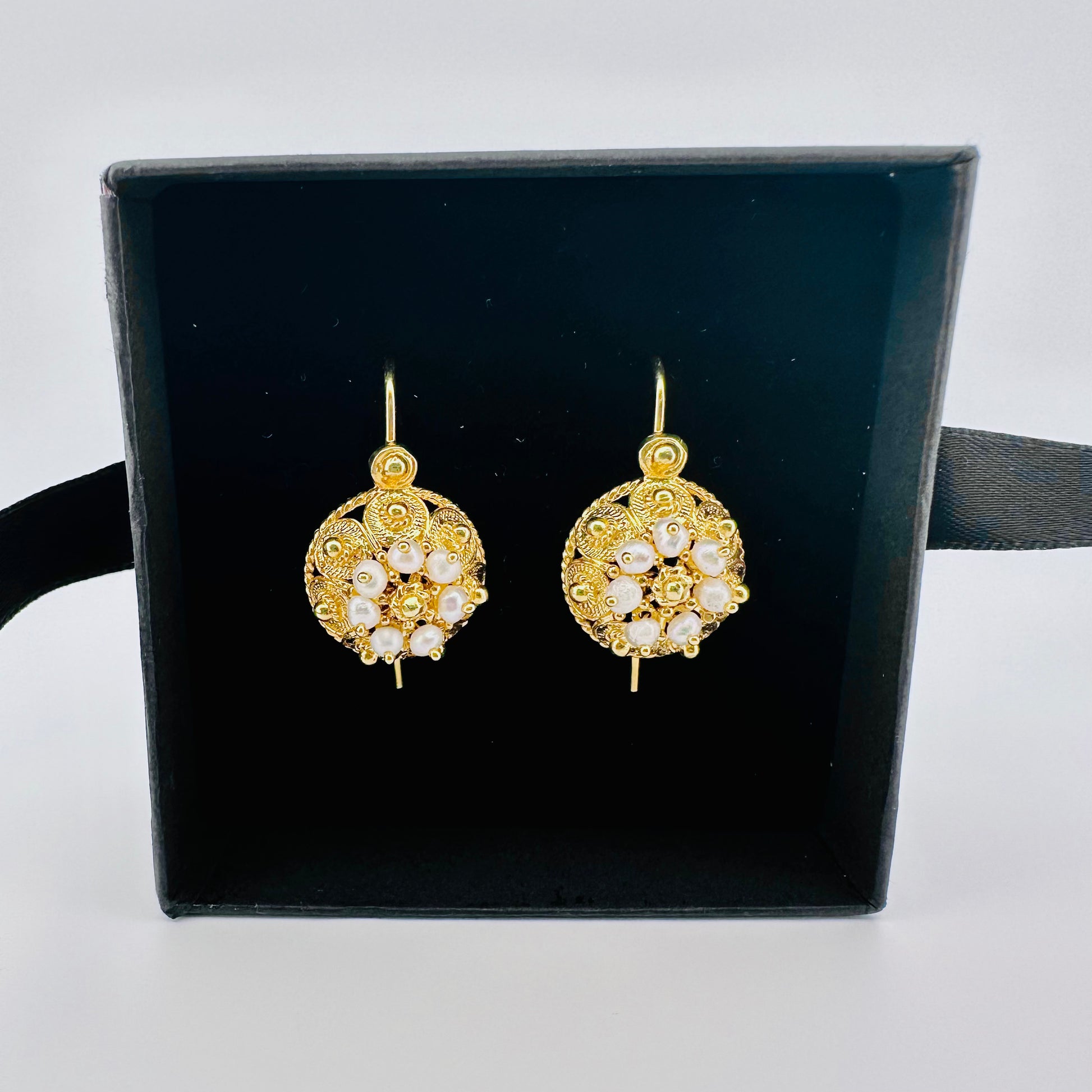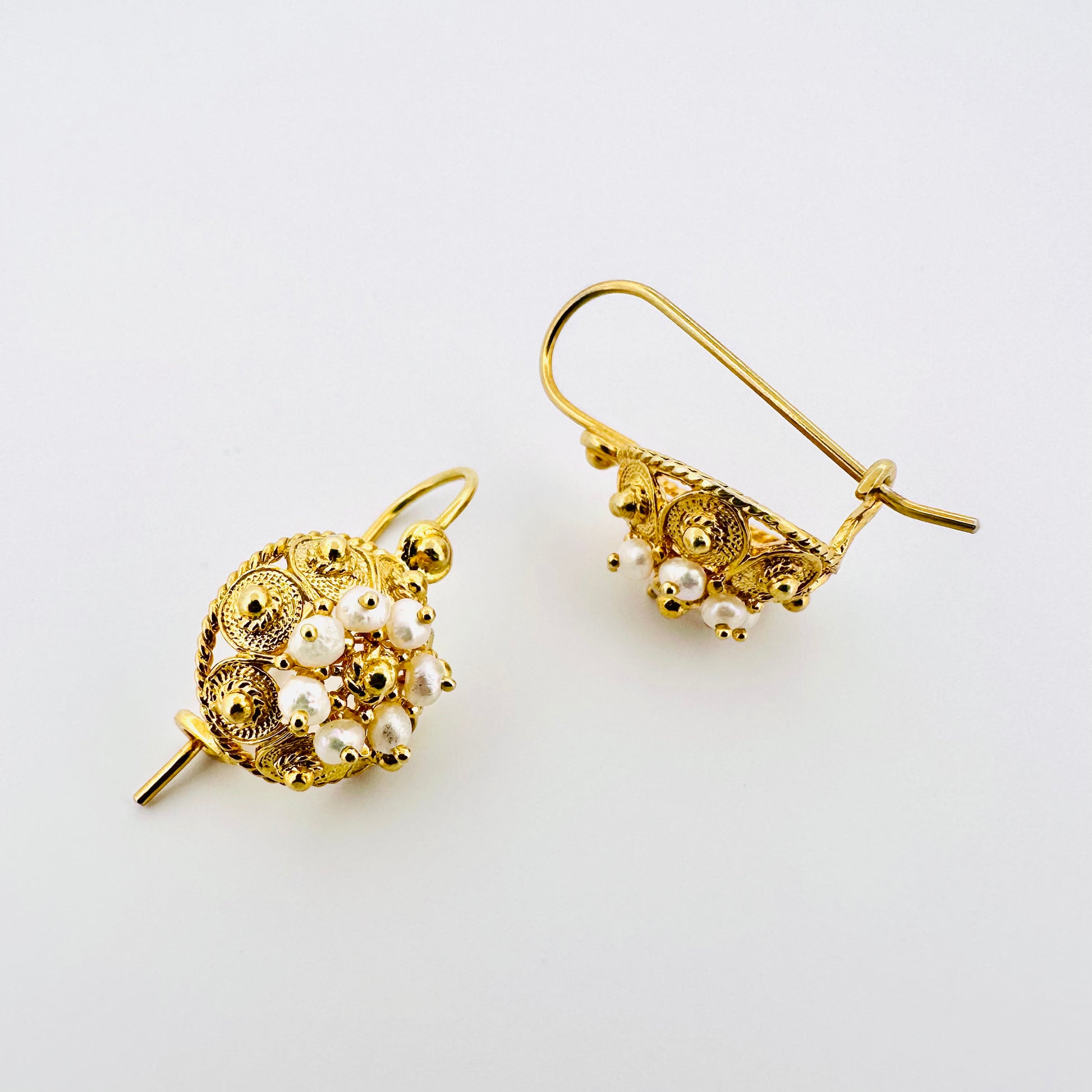 Contemporary version of the classic Botun model, these earrings are very elegant and stylish. Made from one half of the filigree ball with the addition of tiny pearls, these earrings are very luxurious and highlight the lady within you.
