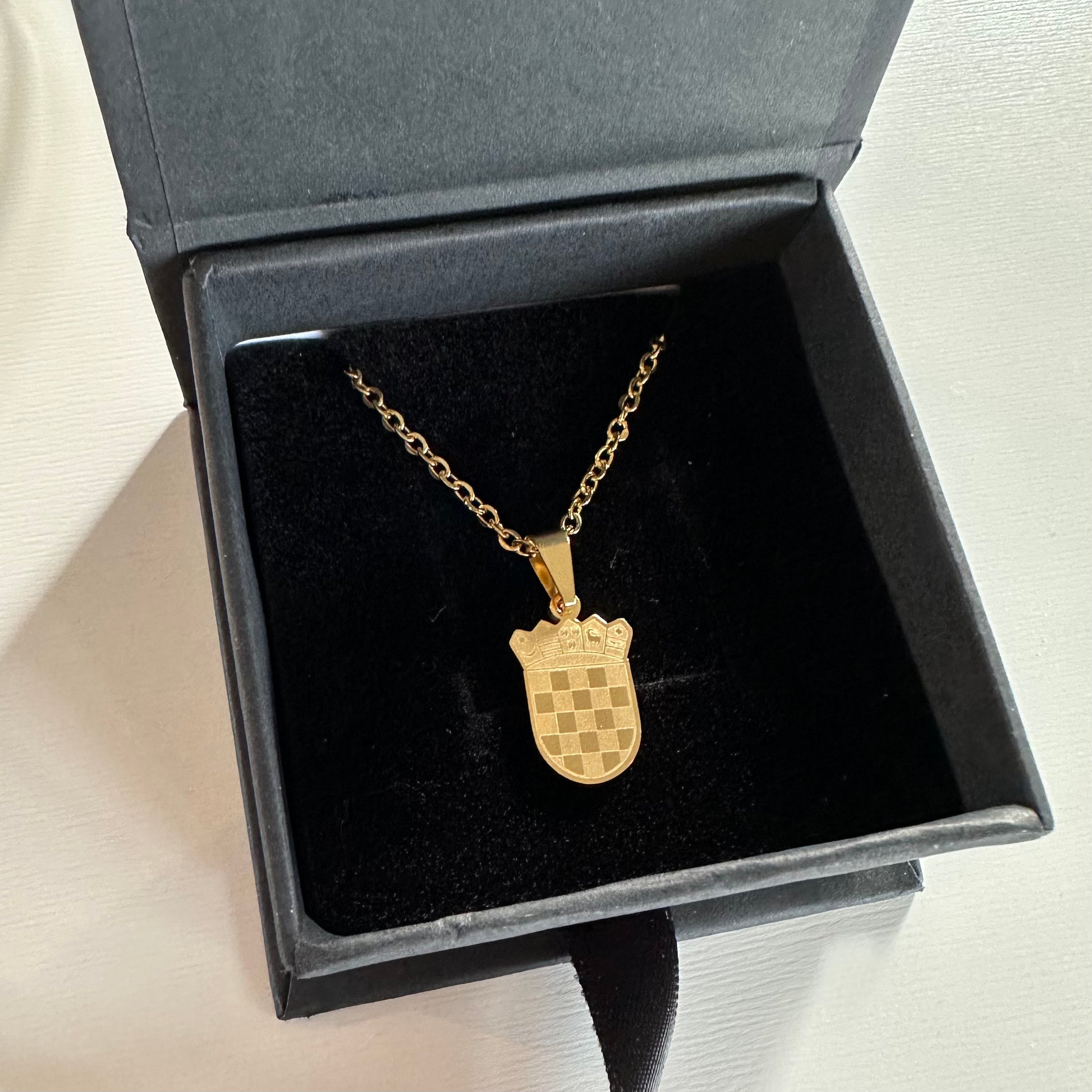 Our Croatian Grb pendant, crafted from stainless steel, allows you to proudly show your heritage wherever you go. The pendant and the necklace chain are made of stainless steel, making it water-resistant and hypoallergenic.